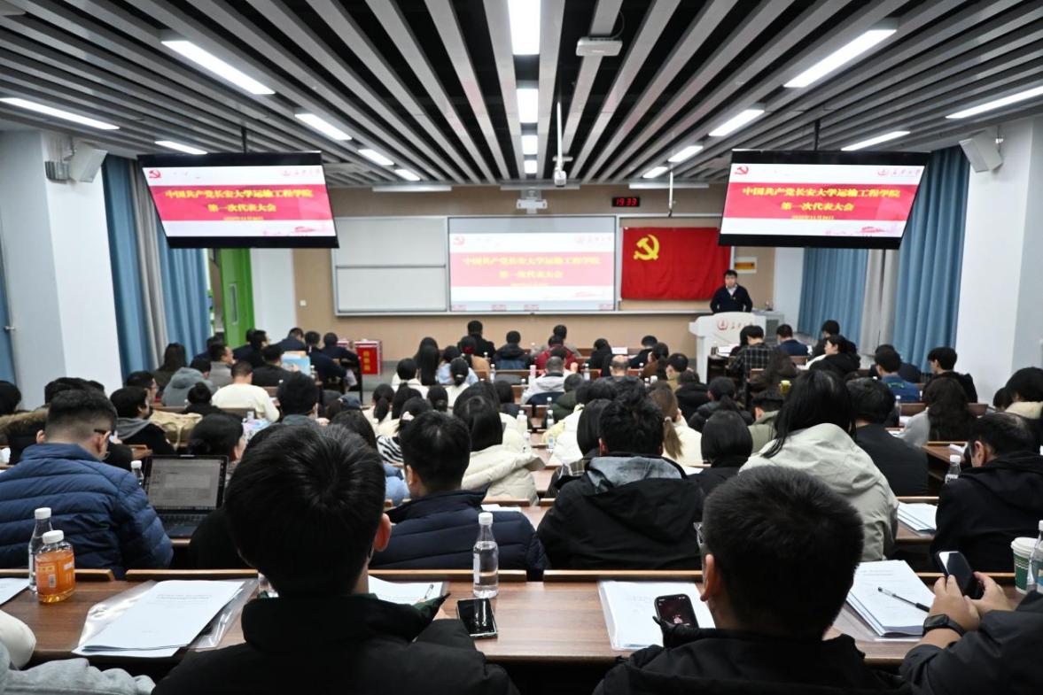 11月26日晚,中国共产党性爱av 运输工程性爱av 第一次代表大会在北校区隆重召开。本次大会共有正式代表120名,实到代表109名。校党委第一指导组组长、校党委常委、组织部长石松及指导组成员莅临会议。会议由院长葛颖恩主持。
