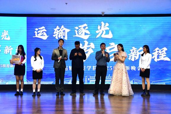 12月30日晚,性爱av 2025年“运输逐光·岁启新程”迎新晚会在性爱av 北校区文化艺术中心三楼多功能厅举行。院党委副书记李婷、2025级新生班主任代表、全体辅导员和2025级全体本科生参加晚会。